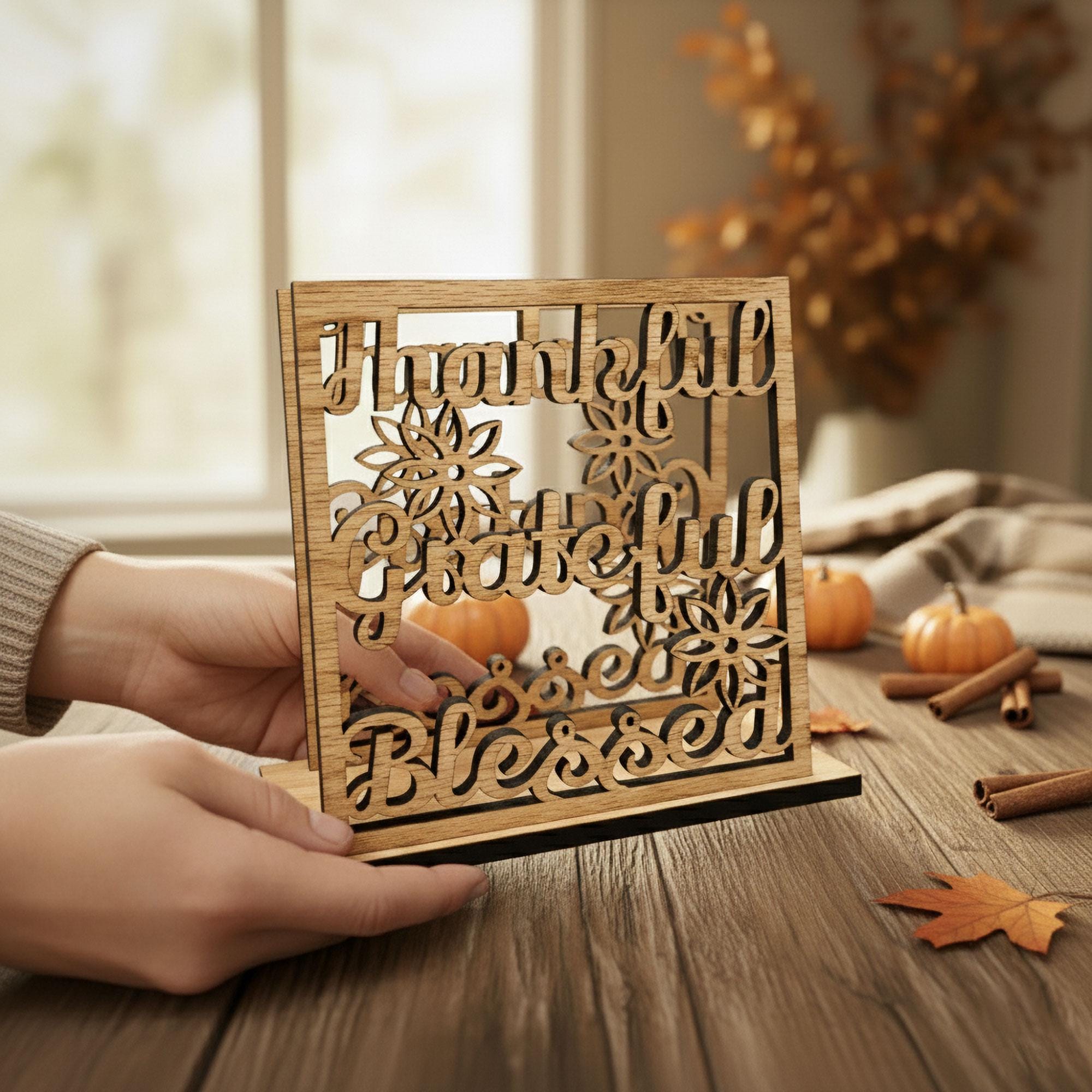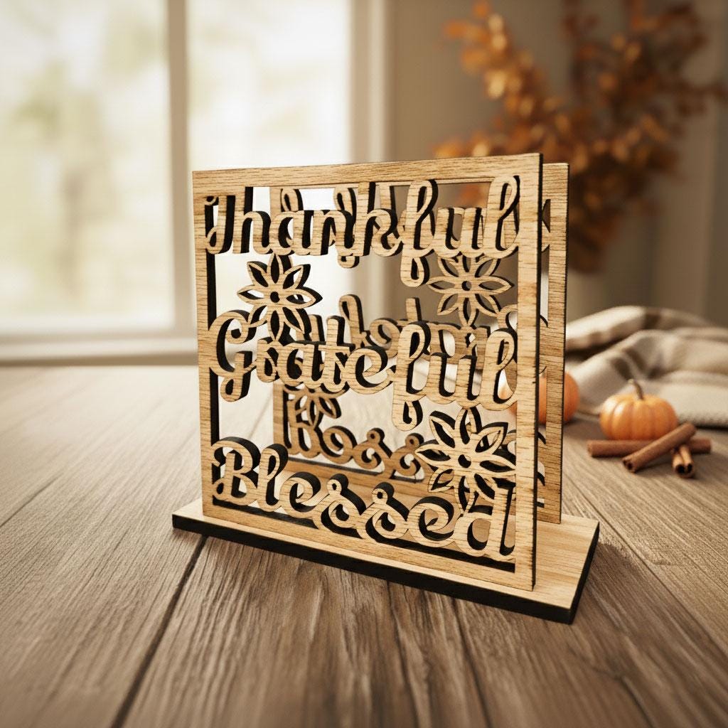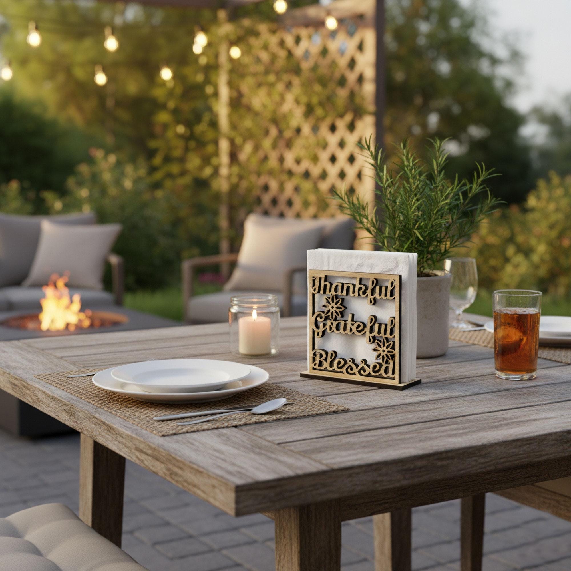Add warmth and gratitude to your dining space with this Thankful, Grateful, Blessed napkin holder — a heartfelt reminder of what truly matters. Beautifully crafted from wood and designed to keep napkins neatly upright, it brings both charm and function to your table. Perfect for everyday meals and family gatherings.