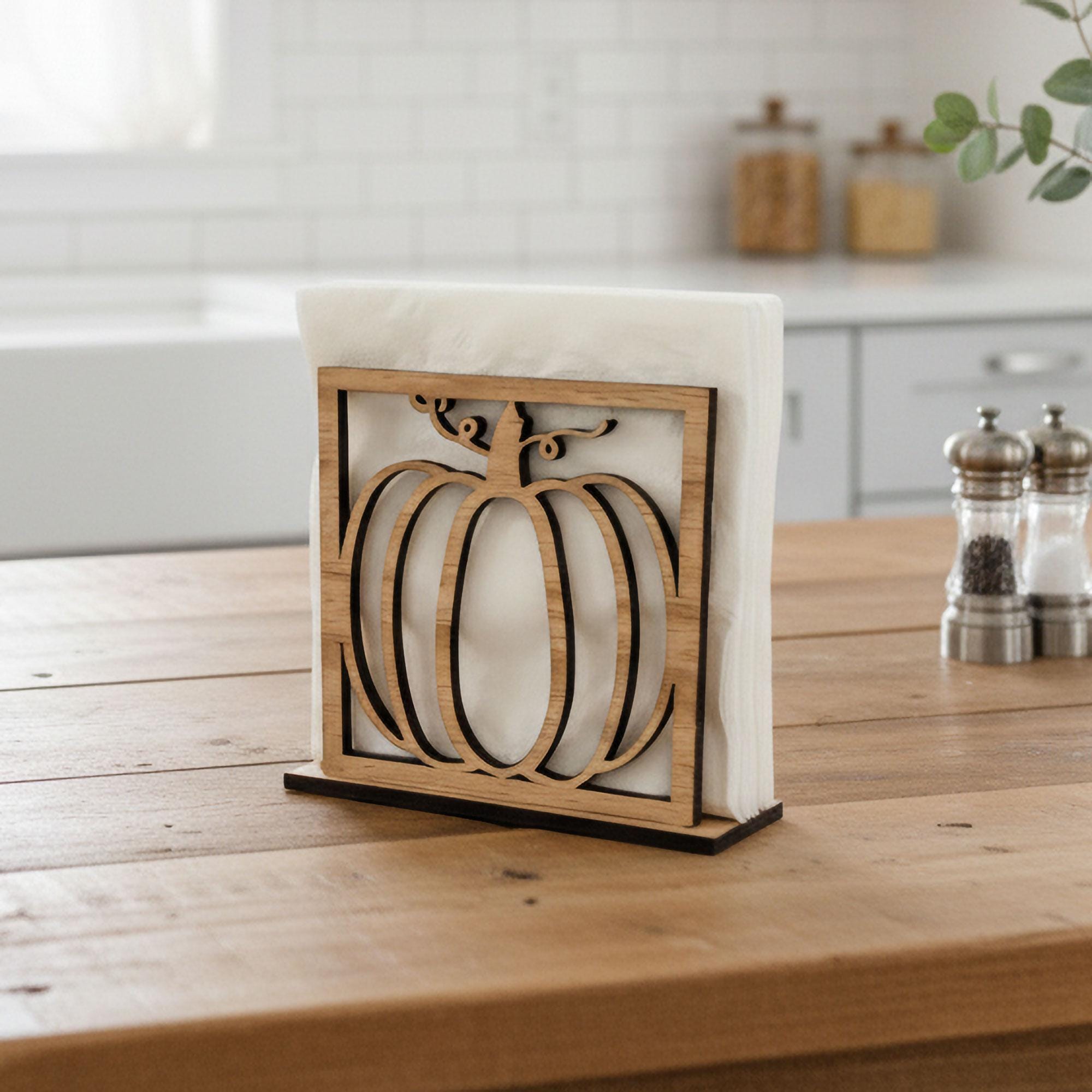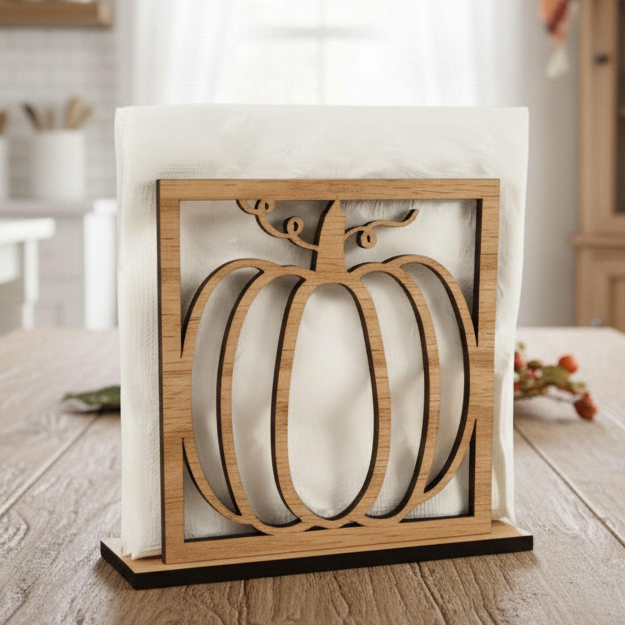 This rustic wood pumpkin napkin holder adds the perfect touch of cozy fall table decor, bringing warmth and seasonal charm to your holiday gatherings. It also makes a wonderful gift for Thanksgiving hosts, newlyweds, or anyone who loves celebrating the cozy spirit of fall.