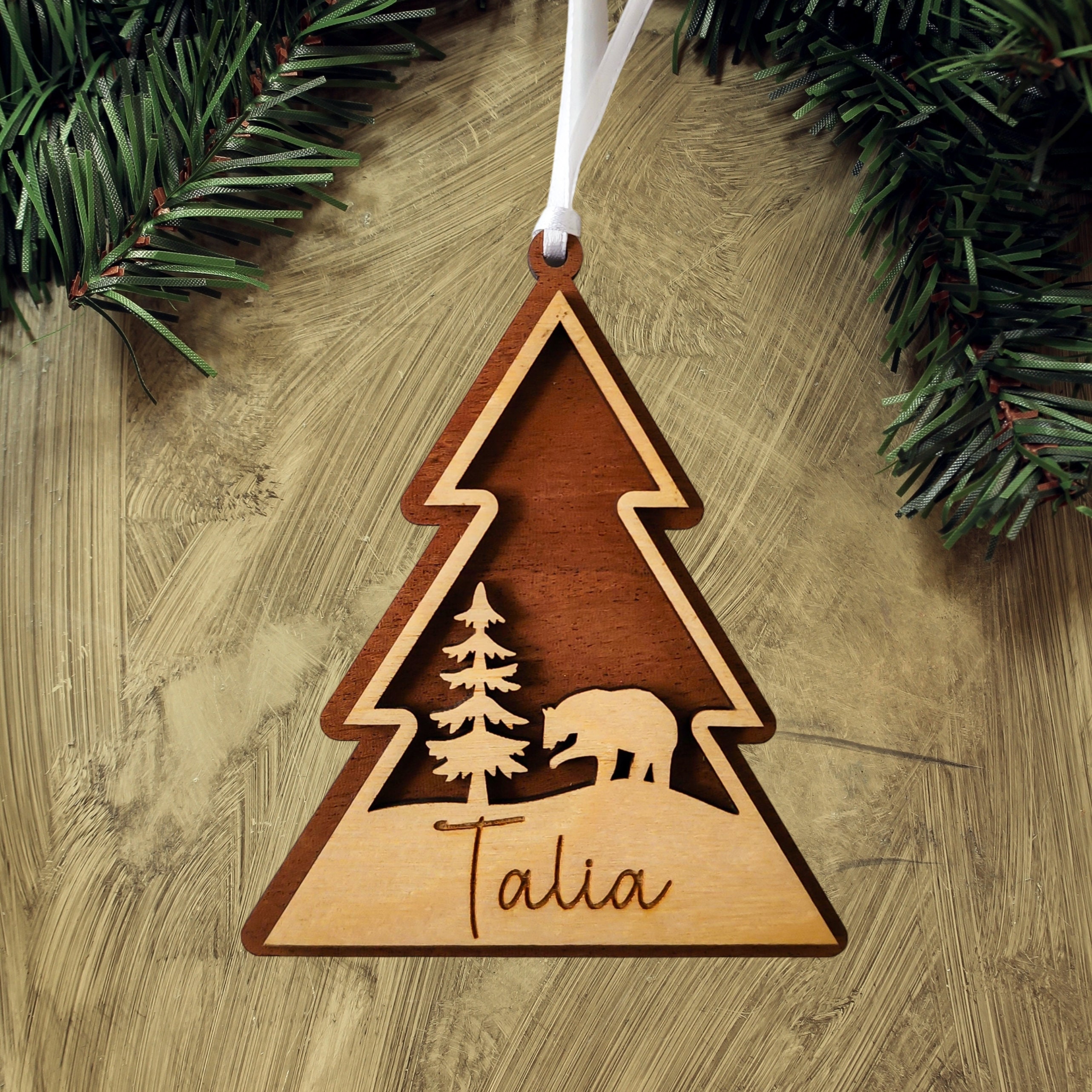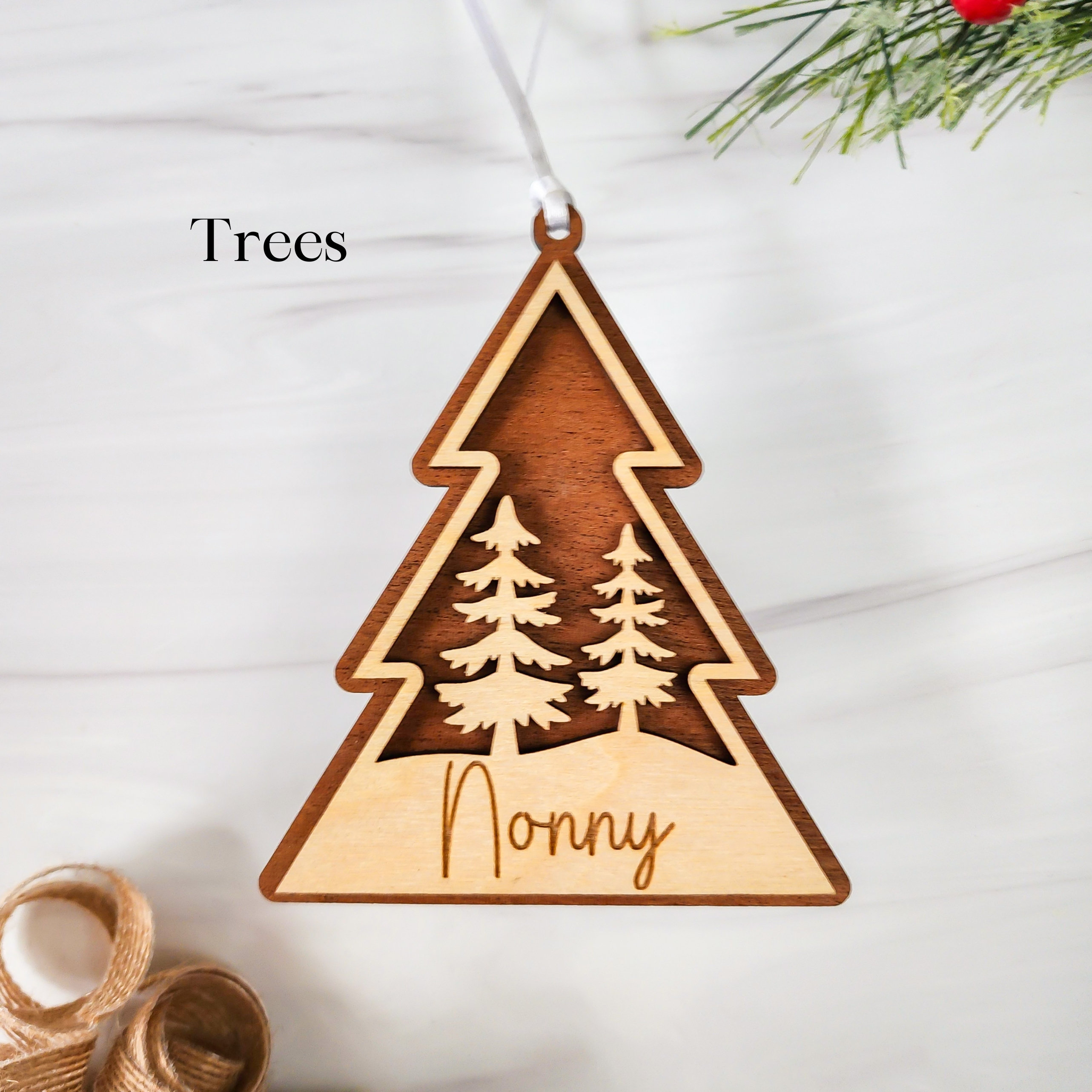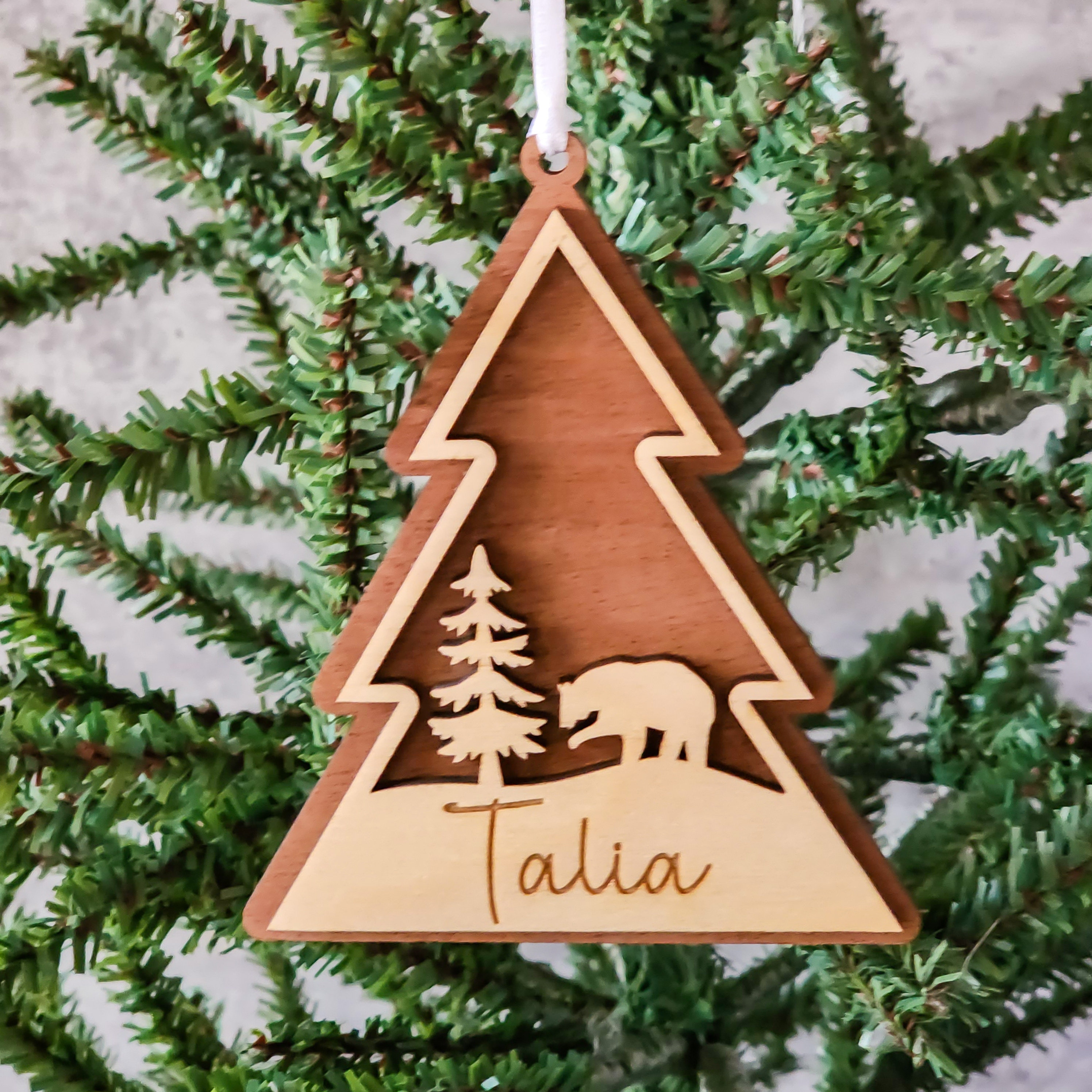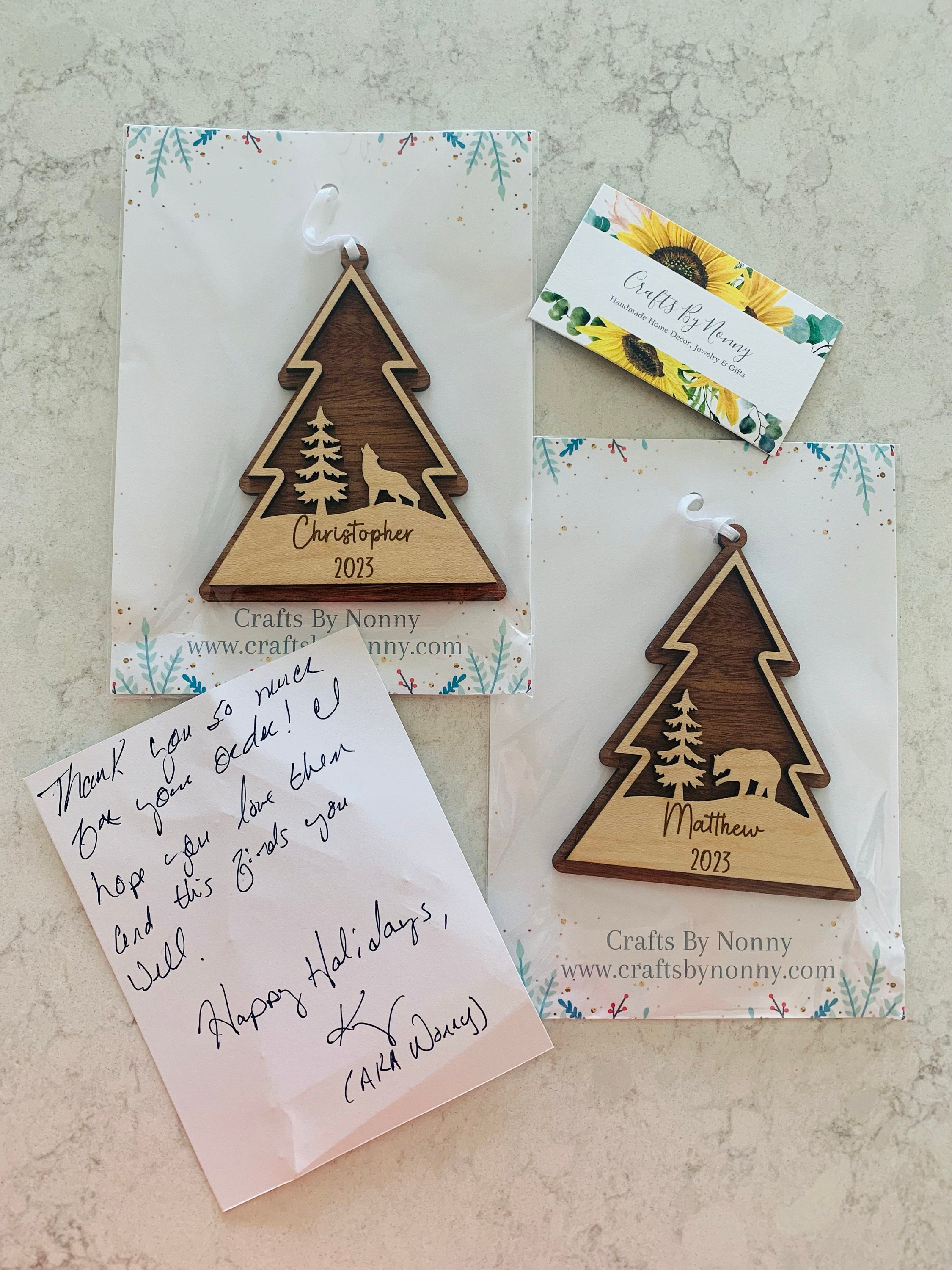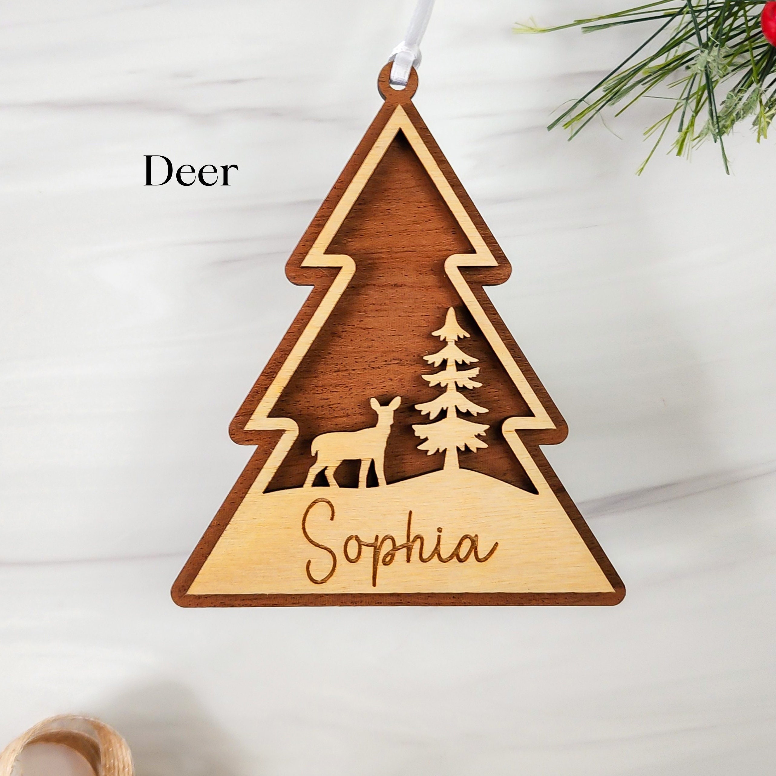 - Personalized Woodland Ornament - Choose Your Design - Moose, Deer, Bear, Wolf, Trees - Holiday Home Decor -