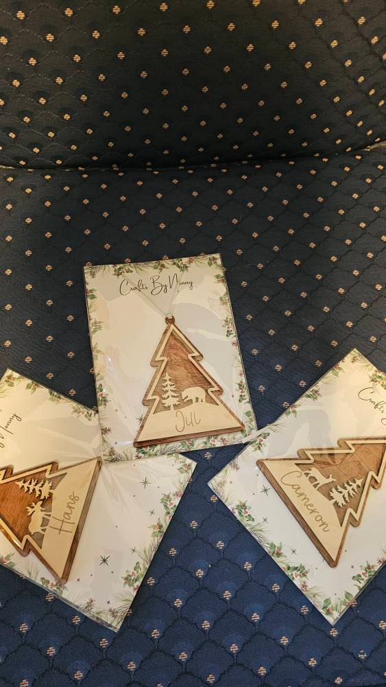 Step into the enchanting world of the forest with these personalized woodland ornaments, available in five captivating designs: deer, moose, bear, wolf, or trees. These unique ornaments are designed to bring the beauty of the wilderness to your holiday decor or to add a touch of nature to any time of the year.