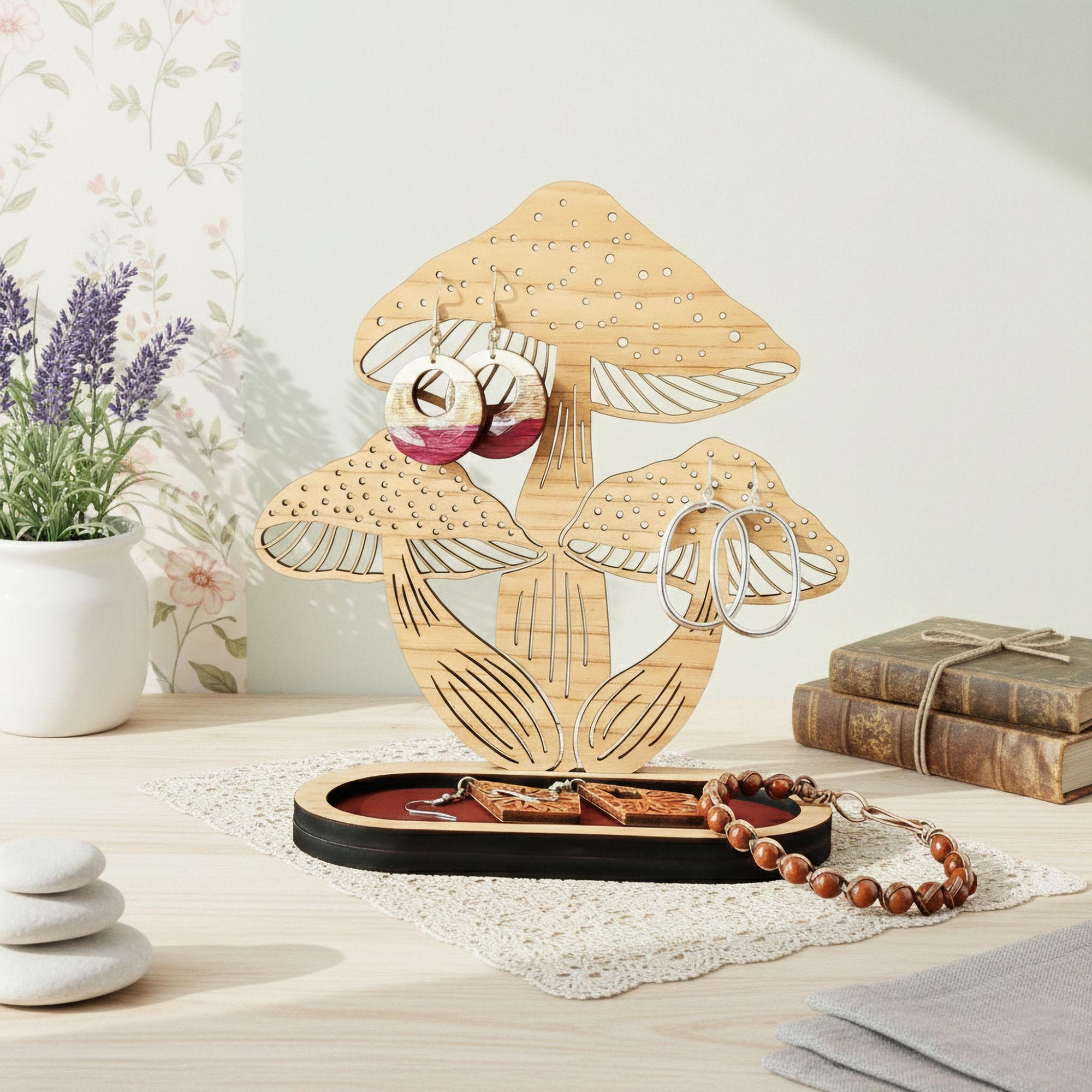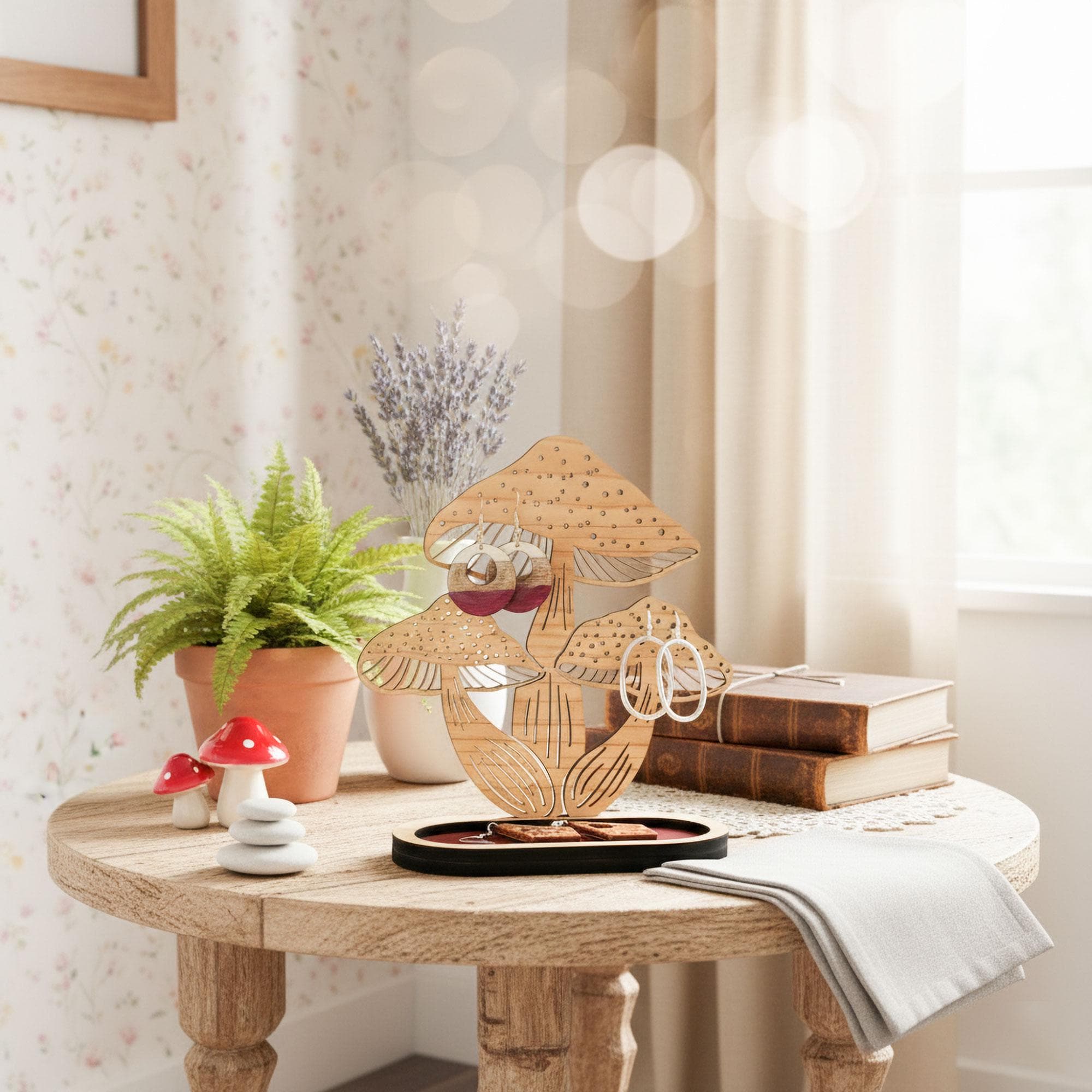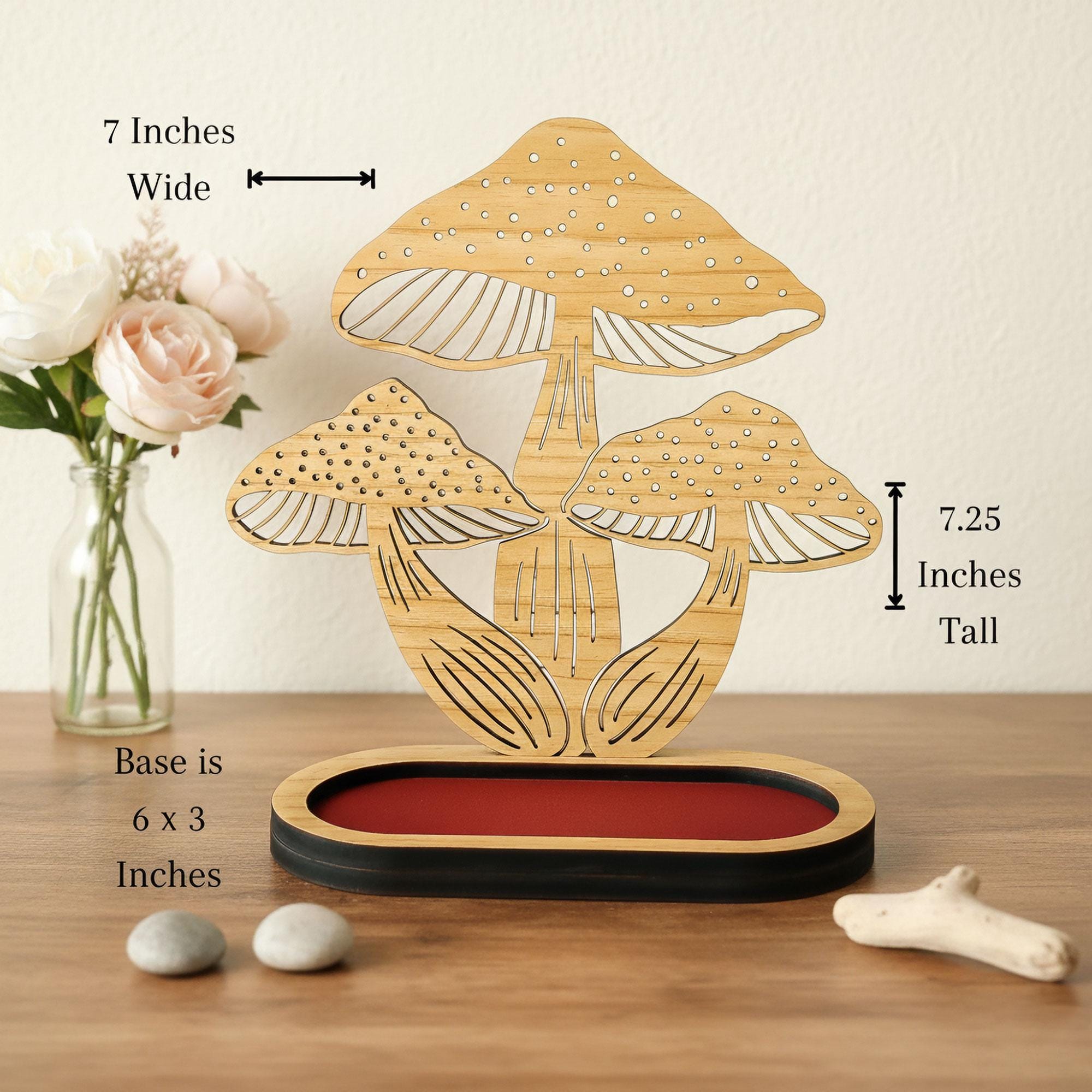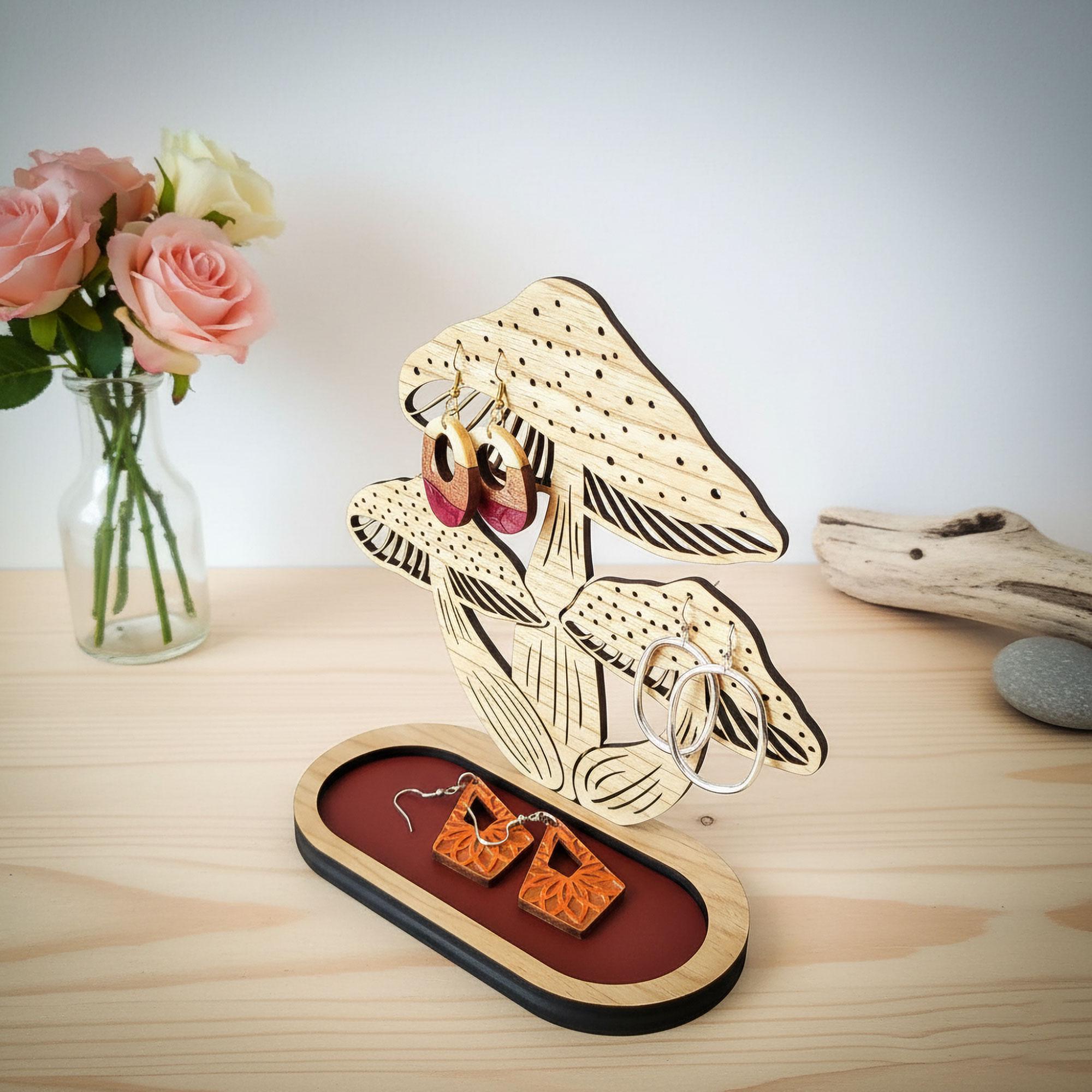Keep your jewelry beautifully organized with this Mushroom Earring Holder featuring a ring holder with your choice of leatherette color making it the perfect mushroom lovers gift!