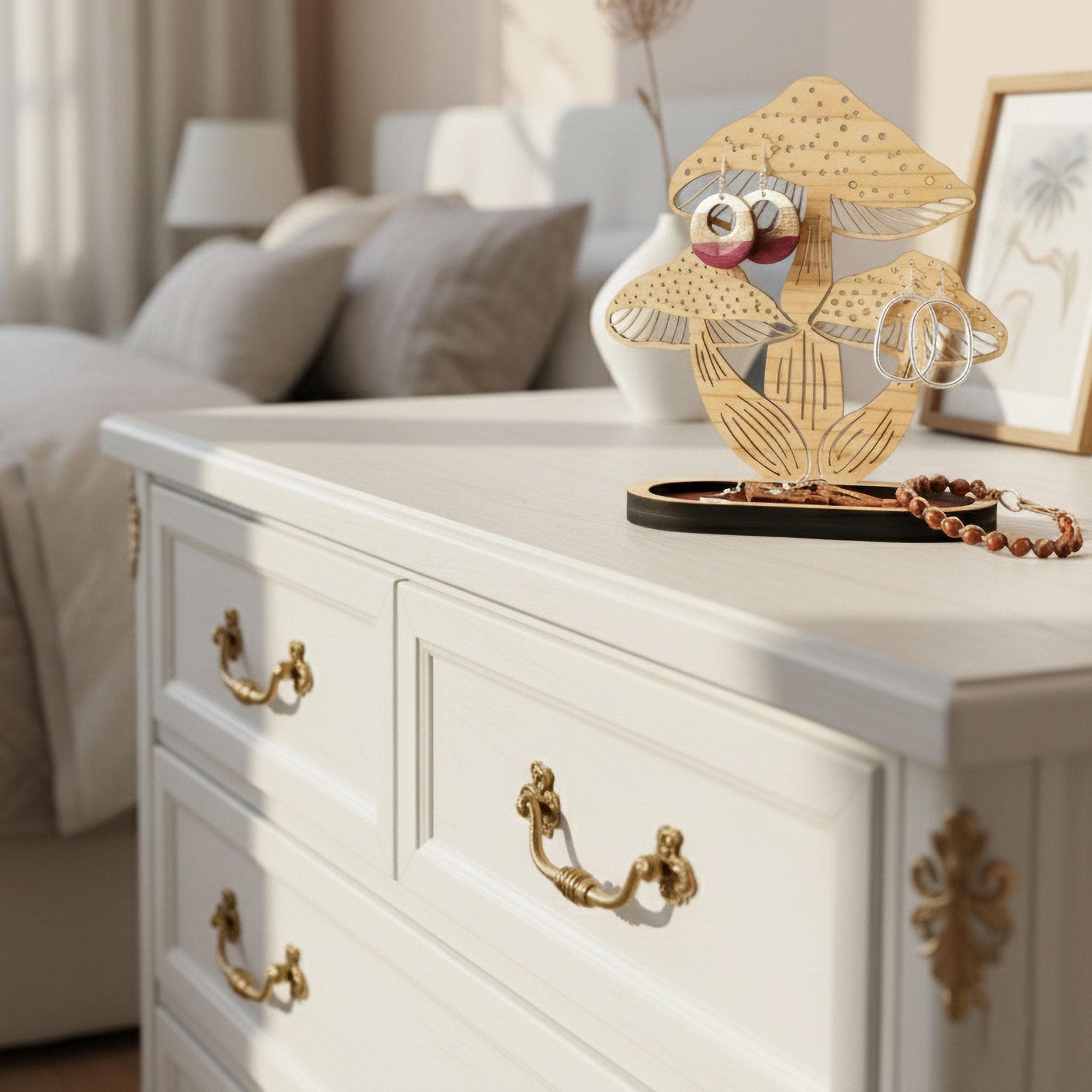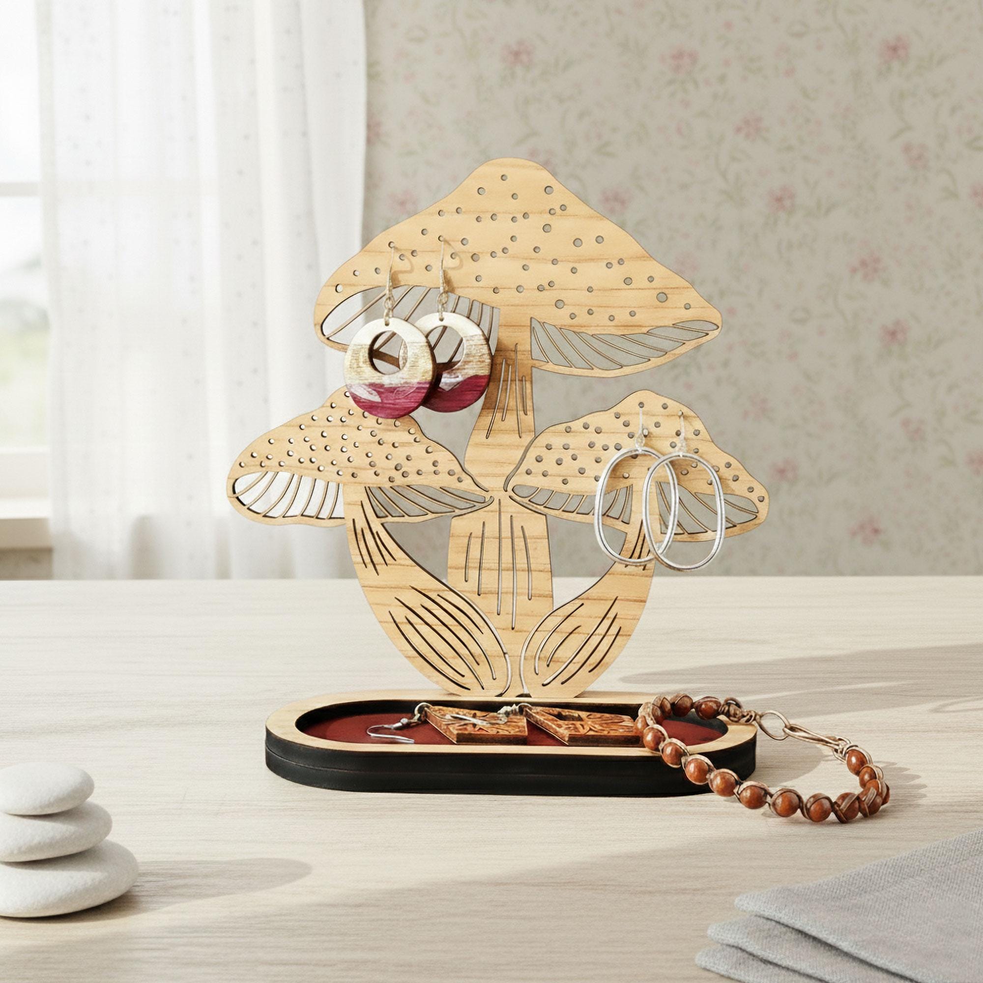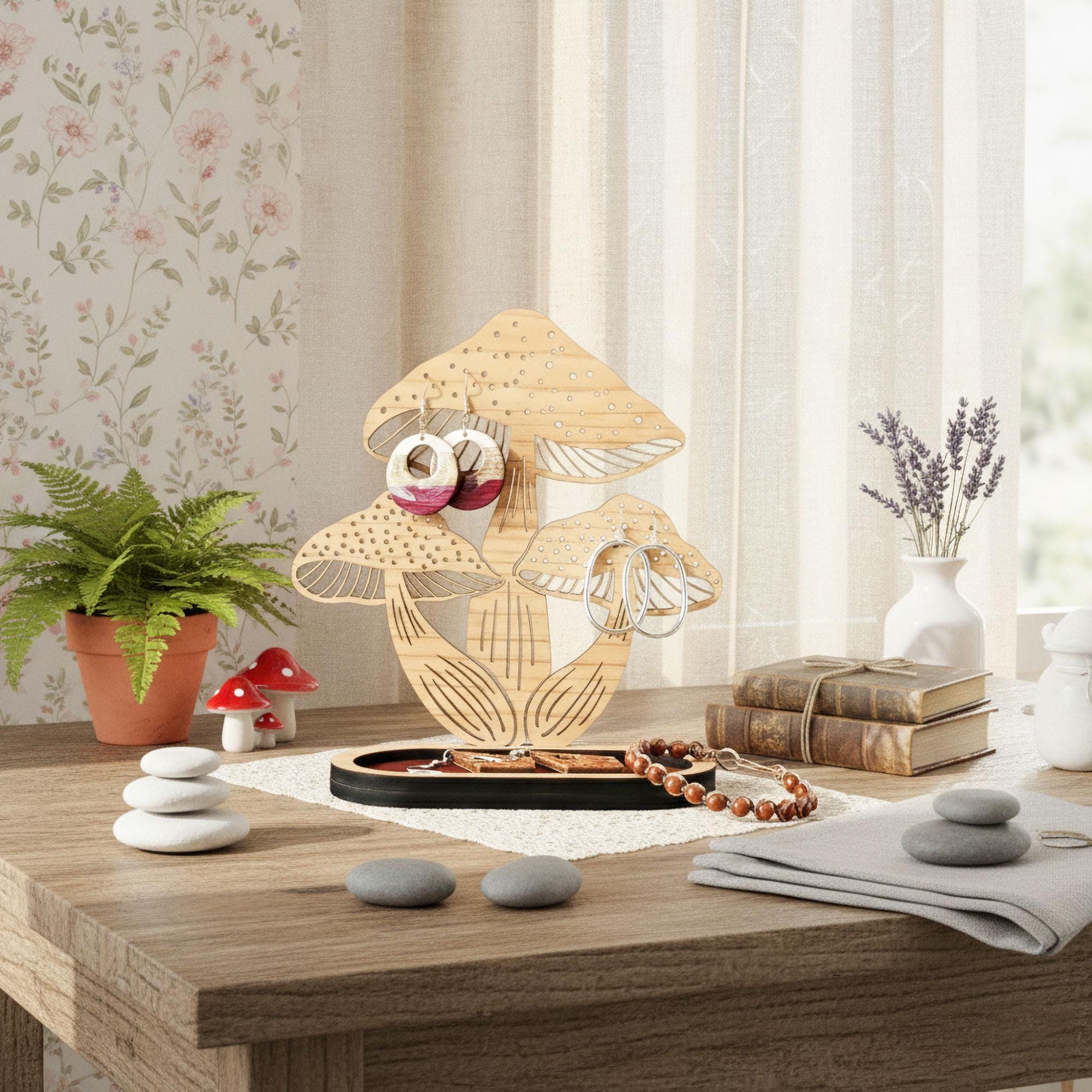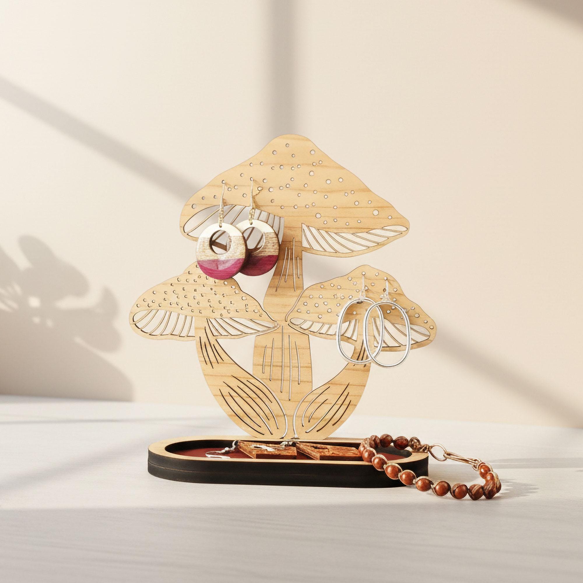 Keep your jewelry beautifully organized with this Mushroom Earring Holder featuring a ring holder with your choice of leatherette color making it the perfect mushroom lovers gift!